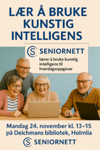 Vi legger opp til en gjennomgang av hvordan vi kan bruke kunstig intelligens til hverdagsaktiviteter, og vi vil prøve å gjøre dette så konkret og praktisk som mulig. Målet er å gjøre dere mer fortrolig med å bruke dette hjelpemiddelet selv. Det er vår veileder Knut-Erik Gudim som leder denne gjennomgangen.