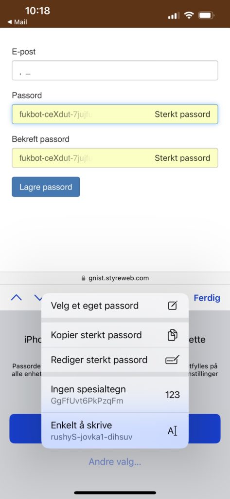 Hvis du synes dette er en løsning som fungerer for deg kan du bruke passordet og lagre det.