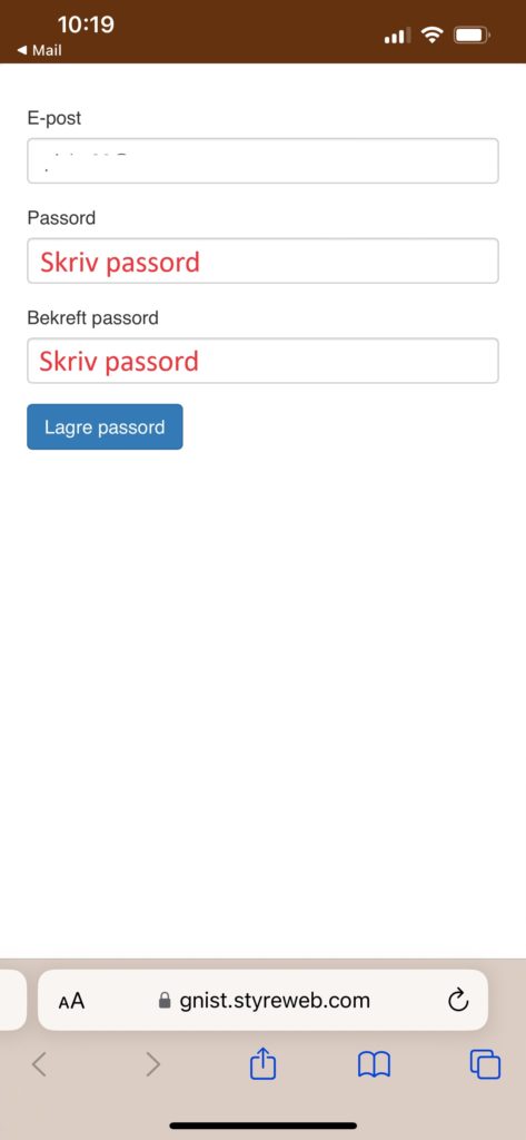 Husk at passordet må fylles ut identisk to ganger. Avslutt med å trykke Lagre passord.