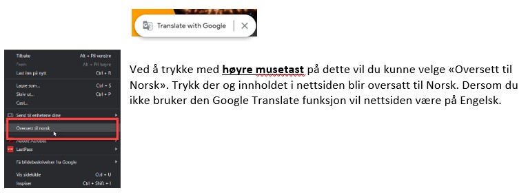 Når du kommer til nettsiden vil det nederst komme frem en mulighet til Google Translate funksjon.