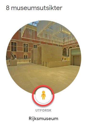 - Nederst på siden finner du 8 museumsutsikter. Det er her du finner det kjente ikonet fra Google Street View. Det betyr at, ved å velge en av disse museumsutsikter, kan du ta deg en virtuell tur i museet.