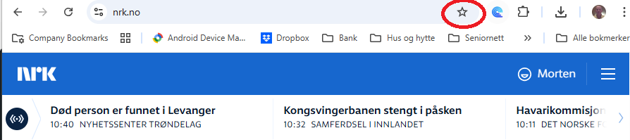 Når du er på et nettsted og ønsker å lage et bokmerke på nettstedet, trykker du på stjerna