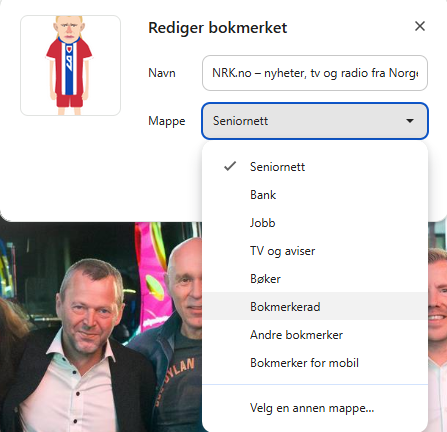 Da får du opp et lite dialogvindu der du velger hvor bokmerket skal legges: