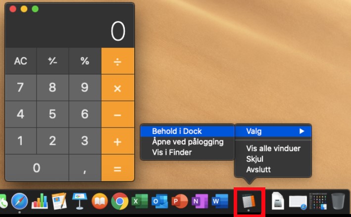 Men dersom programmet du vil åpne ikke vises på Dock-linjen, kan du legge den til der på denne måten (i eksemplet nedenfor legger vi kalkulator appen til Dock-linjen):