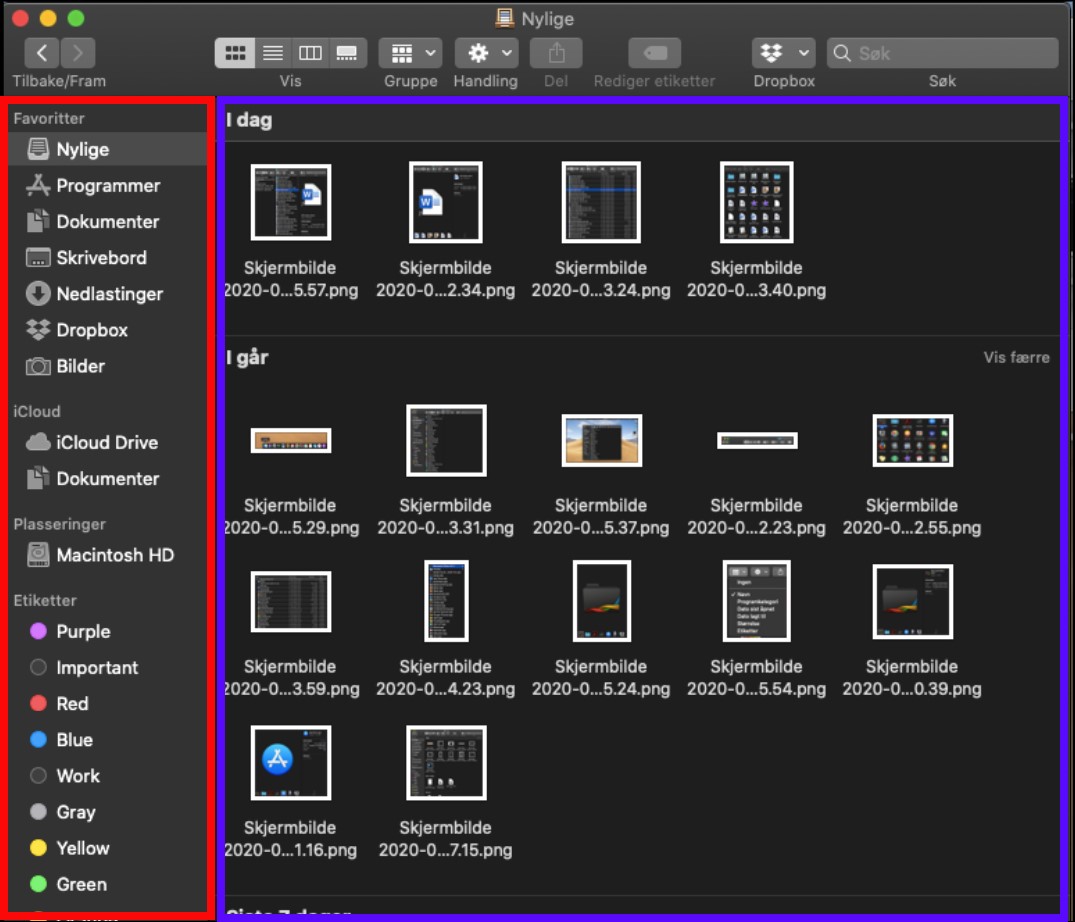 Du vil da også kunne benytte deg av søk-funksjonen i Finder, for lettere å finne de rette filer du er ute etter.