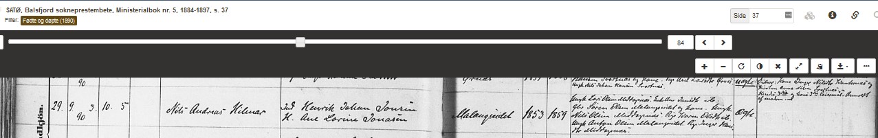 Jeg ser også at jeg vil finne mer opplysninger i Ministerialboken 1884-1897 Balsfjord sokn.