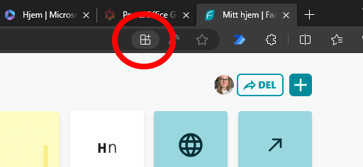 Hvis du bruker Microsoft Edge, er det nesten likt som i Google Chrome, du trykker på symbolet i rød ring, det ligger også her i enden av adressefeltet.