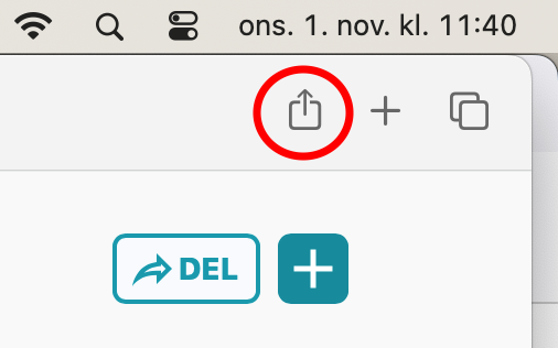 I Google Chrome ligger knappen i adressefeltet og på Safari er den plassert midt på nederst på siden. Se bildene under.