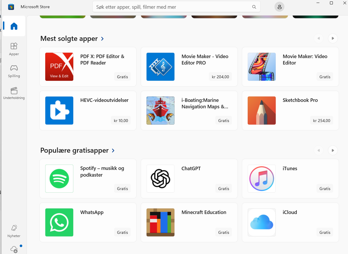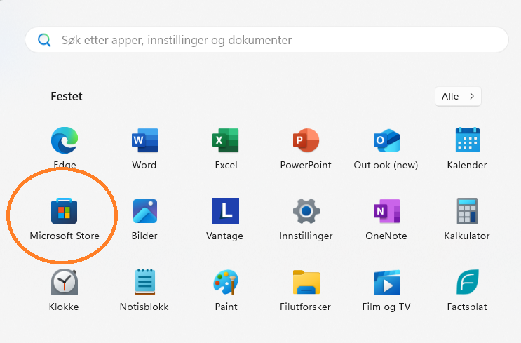 Når du er på en Windows-PC og skal finner apper/programmer går du til Microsoft Store.