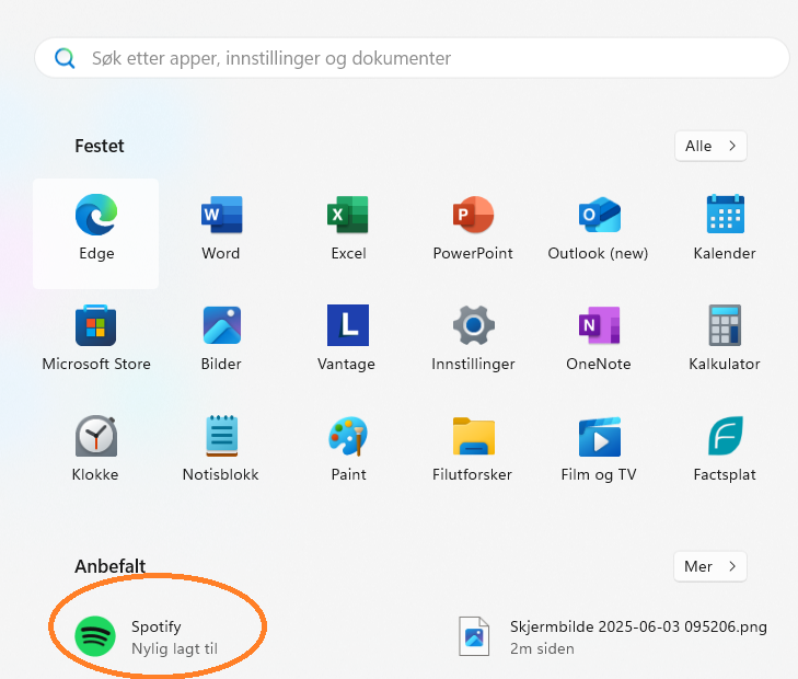 Når jeg ønsker å høre på musikk via min PC er det bare å starte Spotify-programmet.