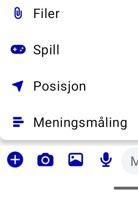 Når du ønsker å dele din posisjon trykker du på + nederst ved siden av der du skriver meldinger.