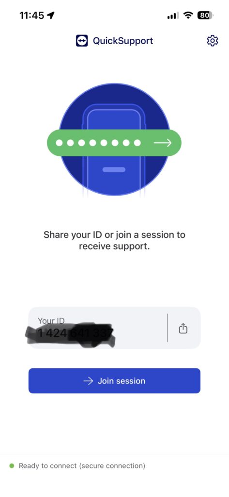 Etter at du har lest opp din ID til datahjelperen, vil den som hjelper deg se skjermen på din enhet og du vil kunne vise datahjelperen hva som er ditt dataproblem. Da vil vi kunne rettlede deg og som oftest løse ditt dataproblem.