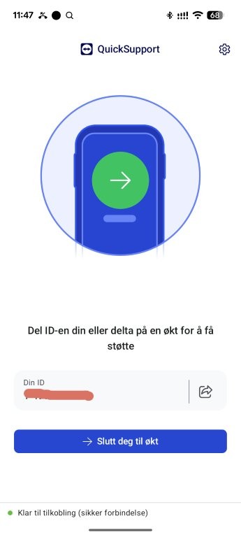 - Har du en Android telefon eller et nettbrett, last den ned her: TeamViewer Quick Support