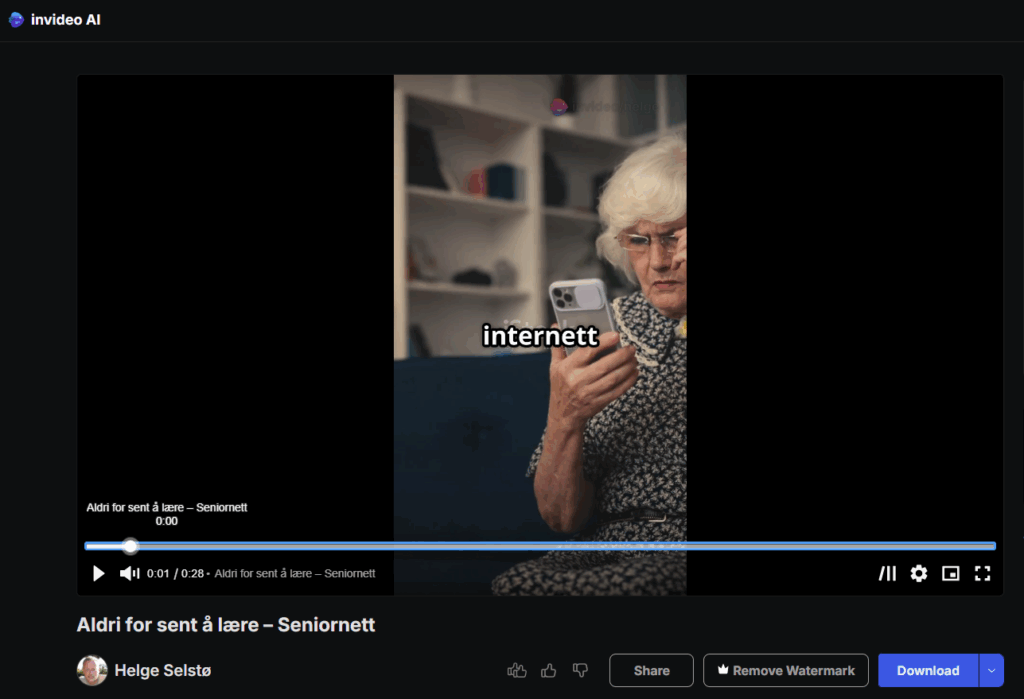 Inne på nettsiden kan du laste ned videoen hvis du ønsker det. Du kan også se hvordan den har blitt direkte på nettsiden. Det ferdige resultatet finner du under her.