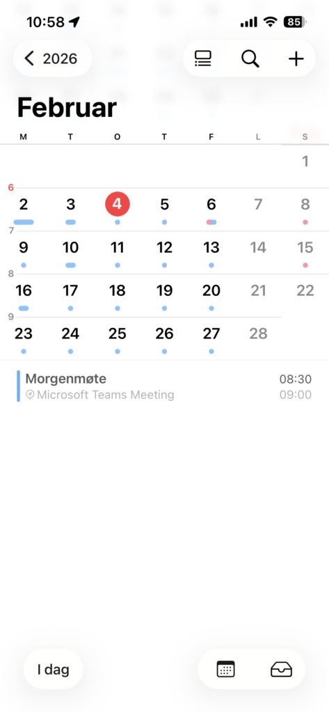 Vi skal ikke i denne artikkelen gå inn på hvordan du setter opp synkroniseringen men hvis du bruker iPhone er iCloud nøkkelen til synkronisering, det fungerer på iPhone, iPad og Mac så godt som automatisk. På PC vil det også kunne fungere hvis du laster ned iCloud-appen der. Bruker du Android er det enklest å bruke Gmail og kalenderfunksjonen der. Da får du kalenderen synkronisert på alle enheter også.