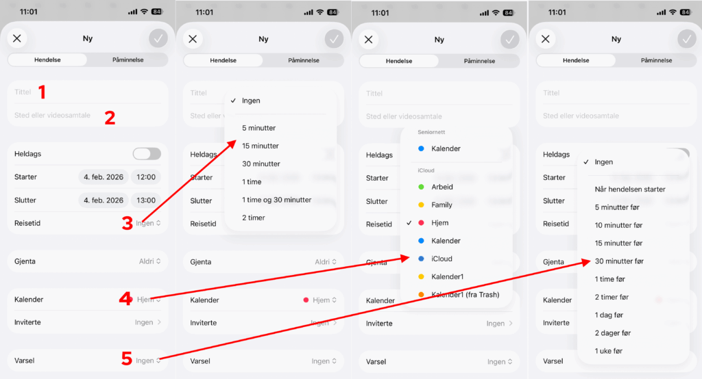 5. Her velger du hvor lang tid i forveien du vil varsles