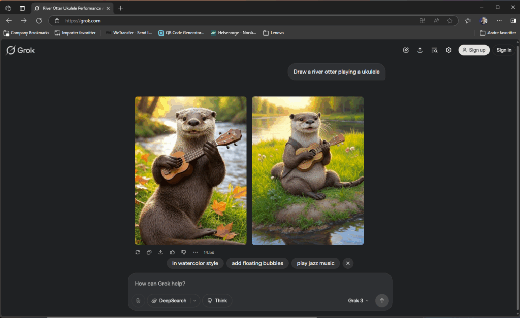 Grok app og nettside. Du kan generere både tekst og bilder. Du kan også redigere bilder i denne appen.