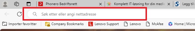 Adressefeltet finner du øverst i nettleseren på PCen din, under faner. Her kan du gjøre et søk eller angi en nettadresse til en side.
