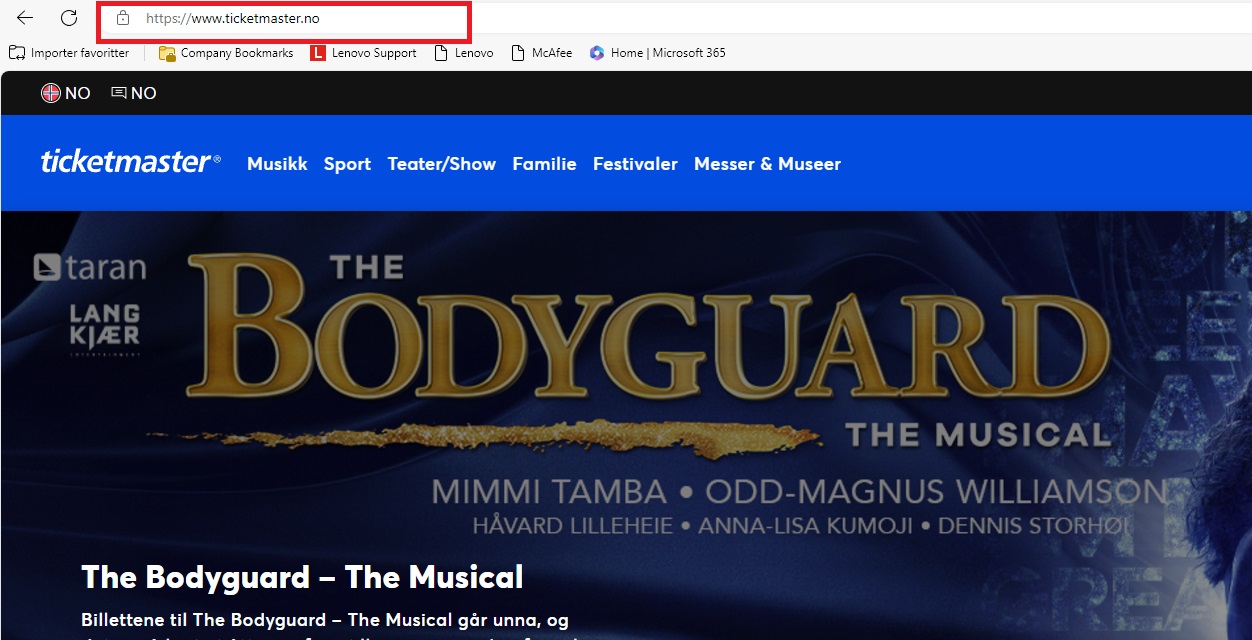 Angir nettadressen «ticketmaster.no» i adressefeltet: