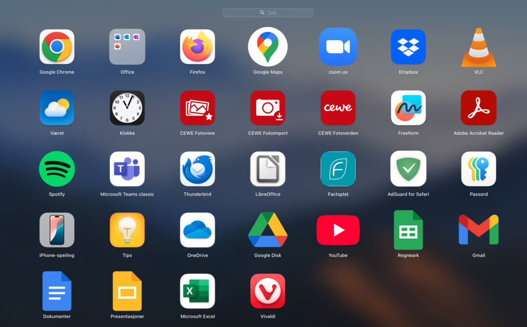 Hvis du er en ivrig Mac-bruker kan det være at du bruker veldig mange ulike apper og da er Launchpad veldig nyttig. I Docken har du begrenset med plass til app-ikoner. I Launchpad finner du raskt frem til den appen du skal bruke og du kan organisere appene slik du selv måtte ønske.