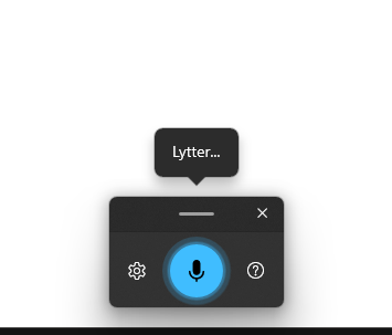 Etter at du har trykt inn Win + H, skal du se det lille bildet under legge seg over programmene dine nederst på skjermen. Den «sier» lytter og da kan du starte å si det du vil skrive.