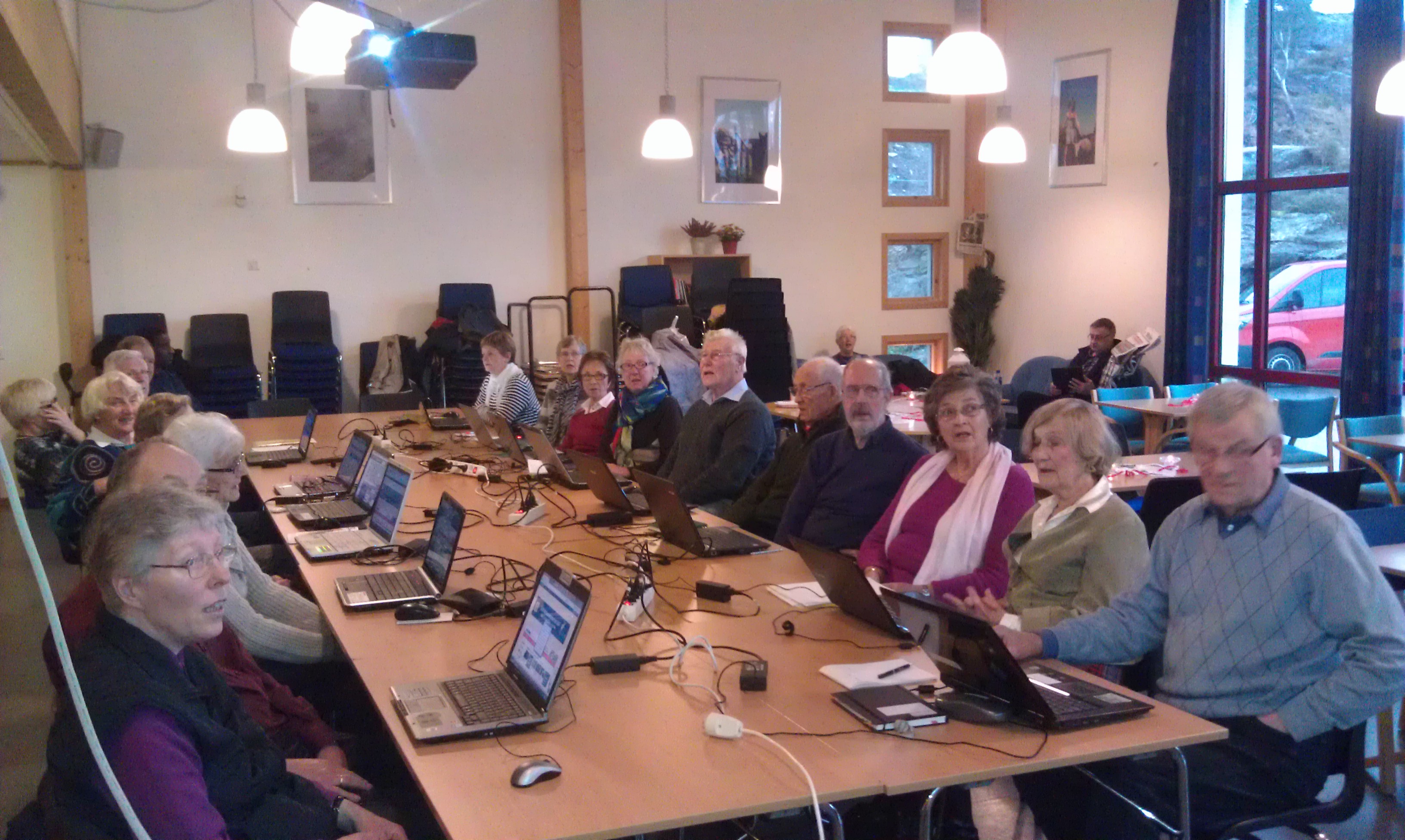 Hold Control-/Cmd-tasten nede. Trykk på + for å forstørre eller − for å forminske.