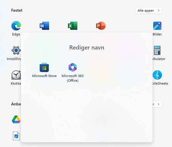 Mapper på Startmenyen