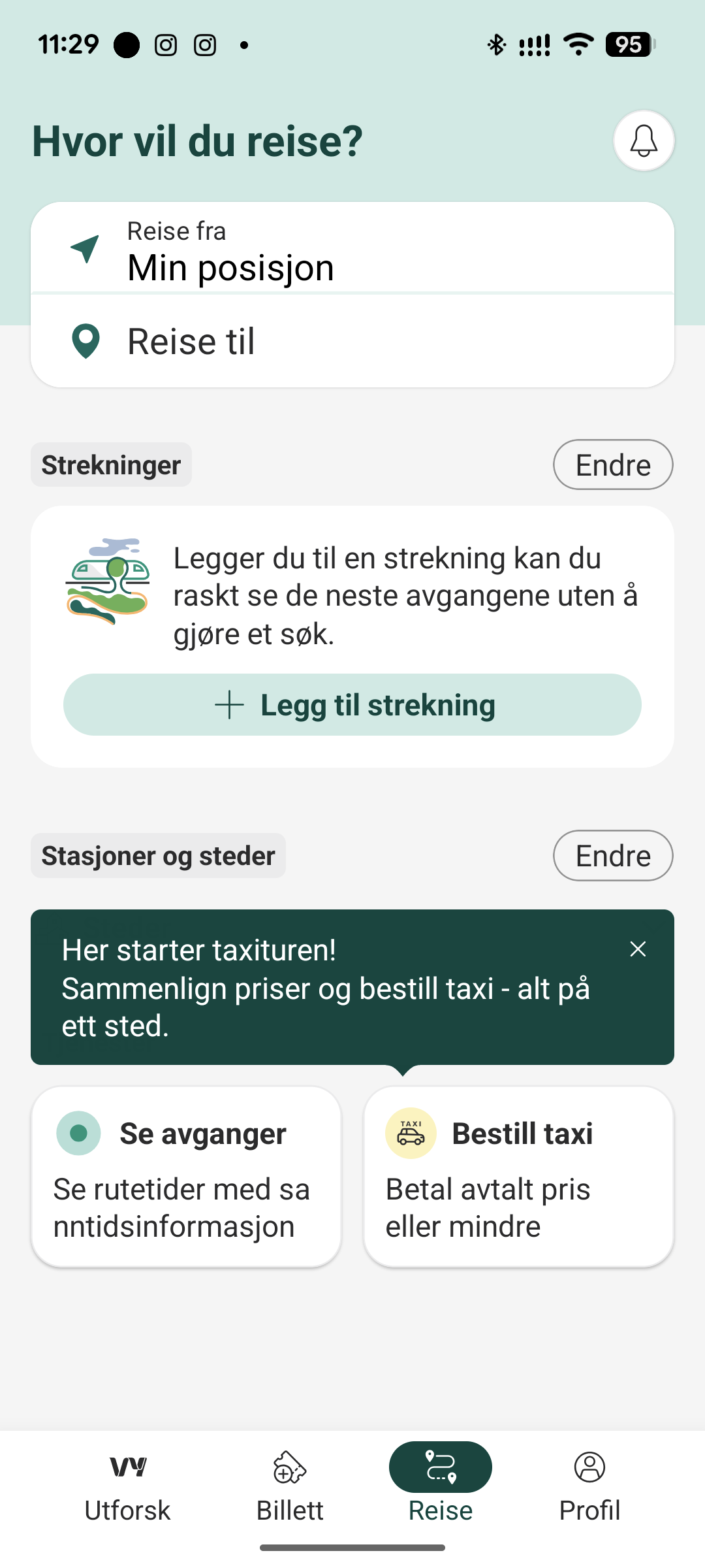 Vanligvis når du går inn på app-en vil du se det bildet der du skal finne reisemål: