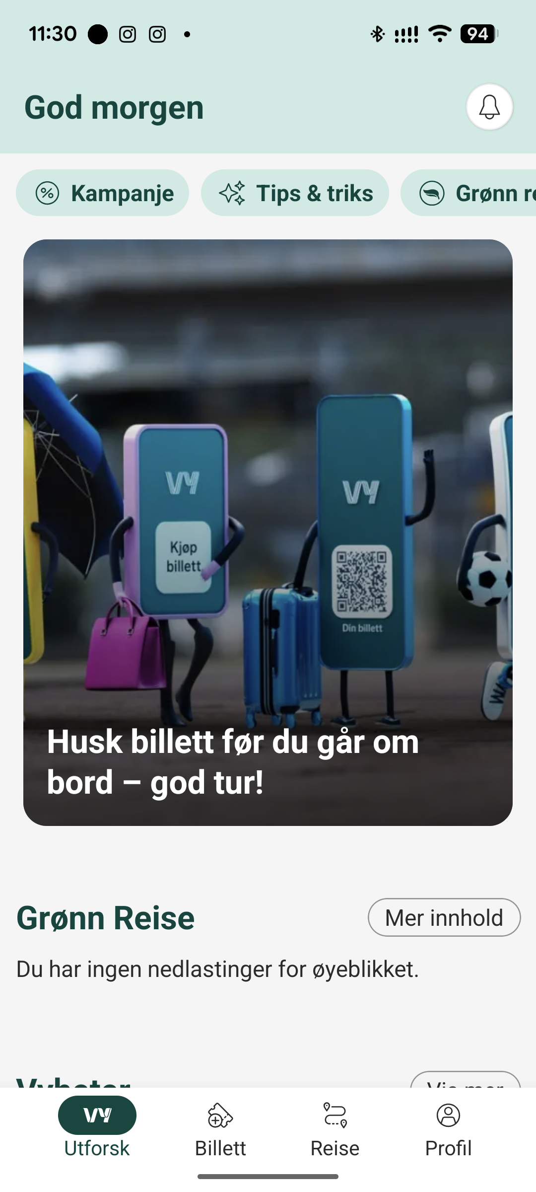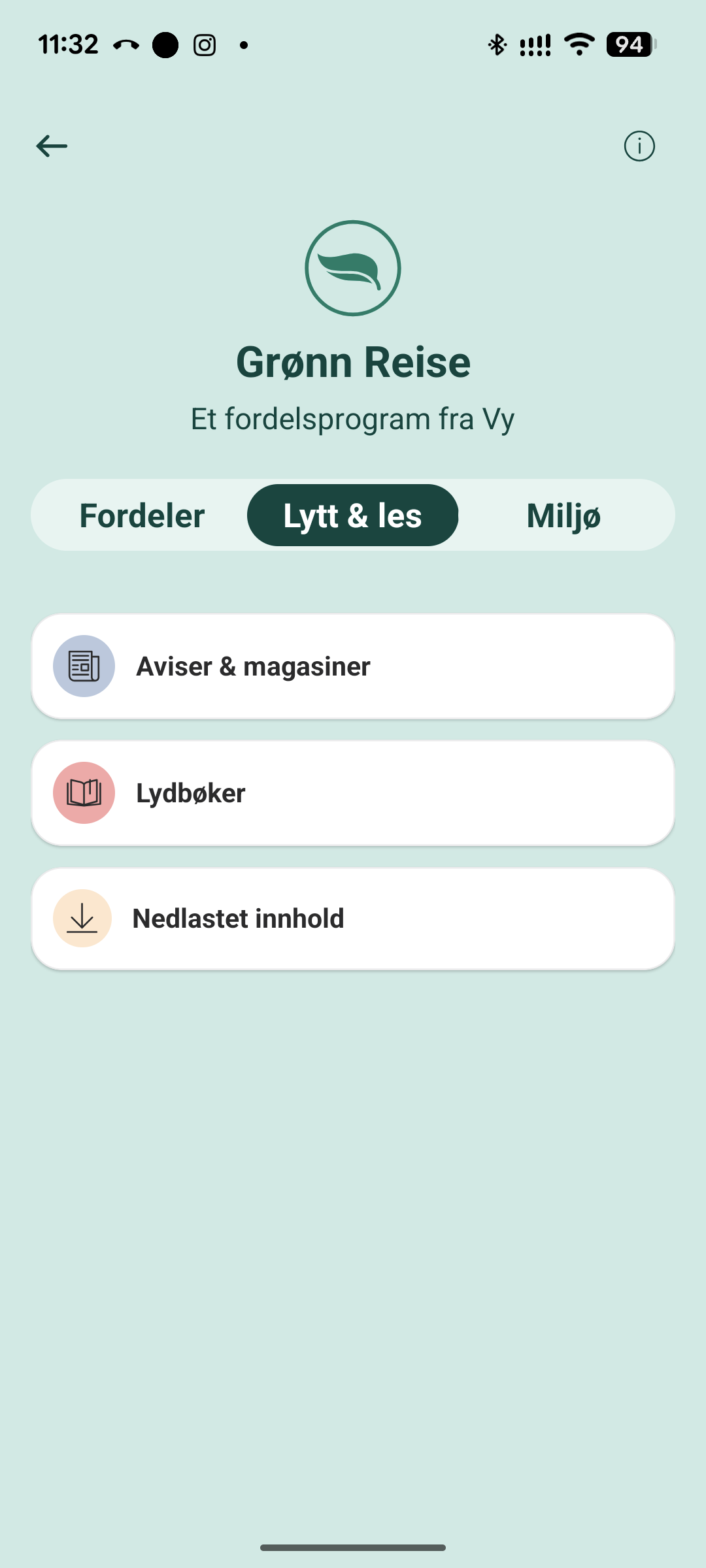 Du kan også bruke dette på en PC via en nettleser. Gå i så fall inn her: Grønn Reise | Vys fordelsprogram | vy.no