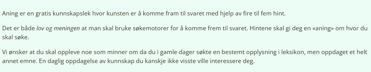 Start med å gå til nettstedet https://aning.no/ (Det holder at du skriver aning.no i adressefeltet i nettleseren din)