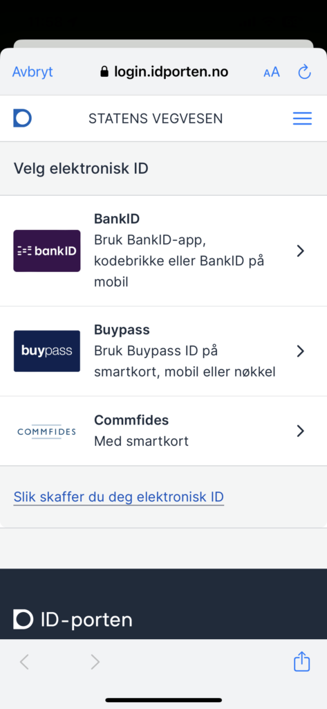 Når du har trykt på «Logg inn» knappen vil du få opp den vanlige innloggingen med BankID. Bruk den innloggingsmetoden du er vant til å bruke.