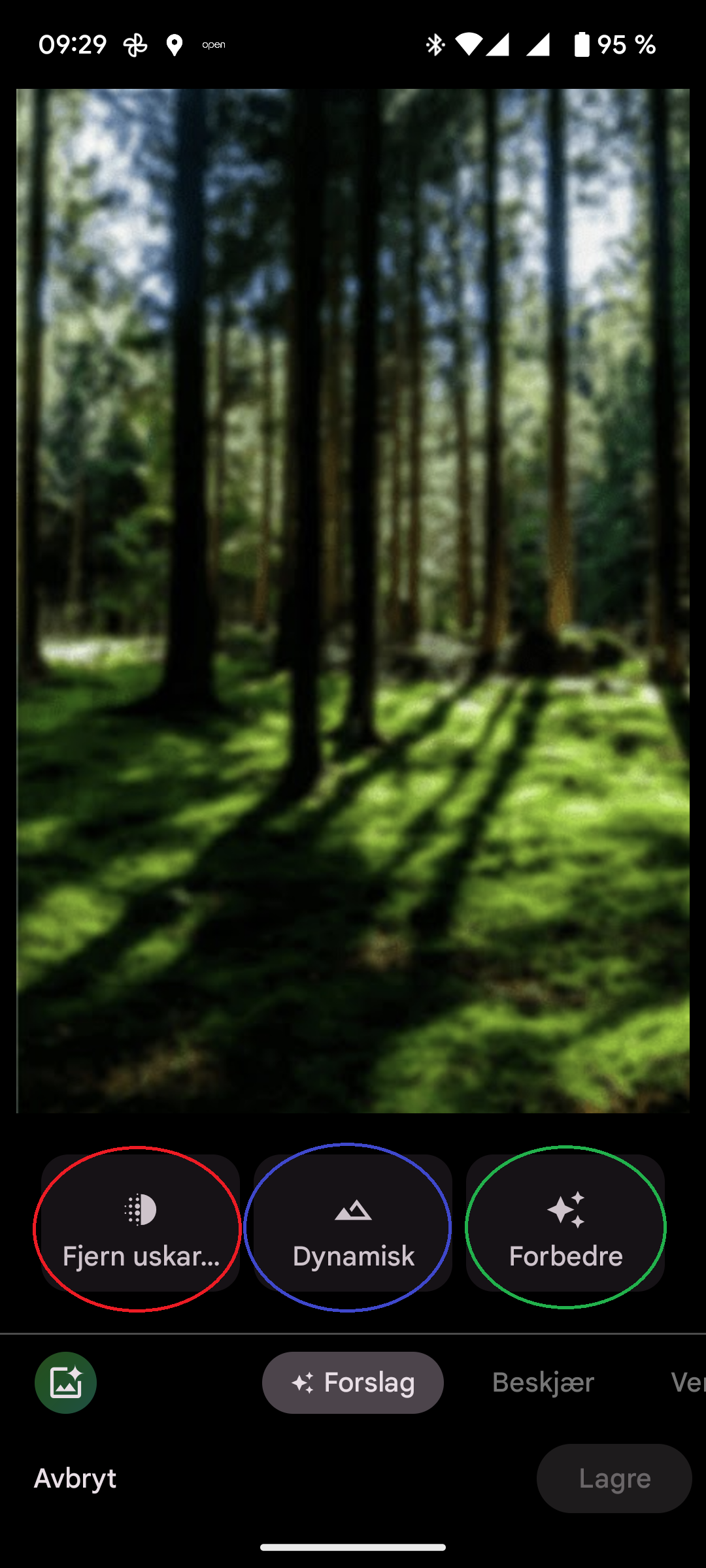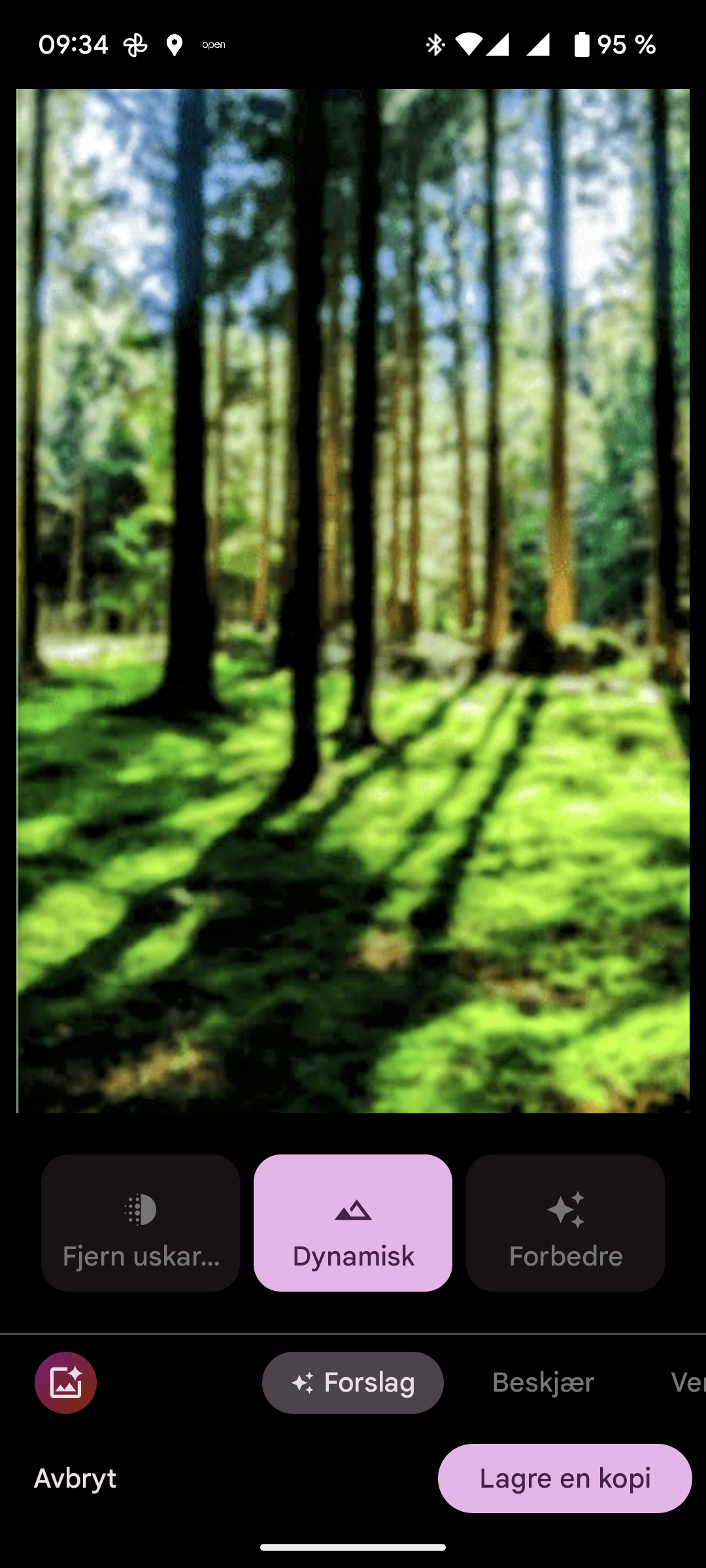 Da kommer det opp ulike valg for hvordan du kan forbedre bildet. Appen foreslår her 3 ulike metoder: Fjern uskarphet, Dynamisk og Forbedre.