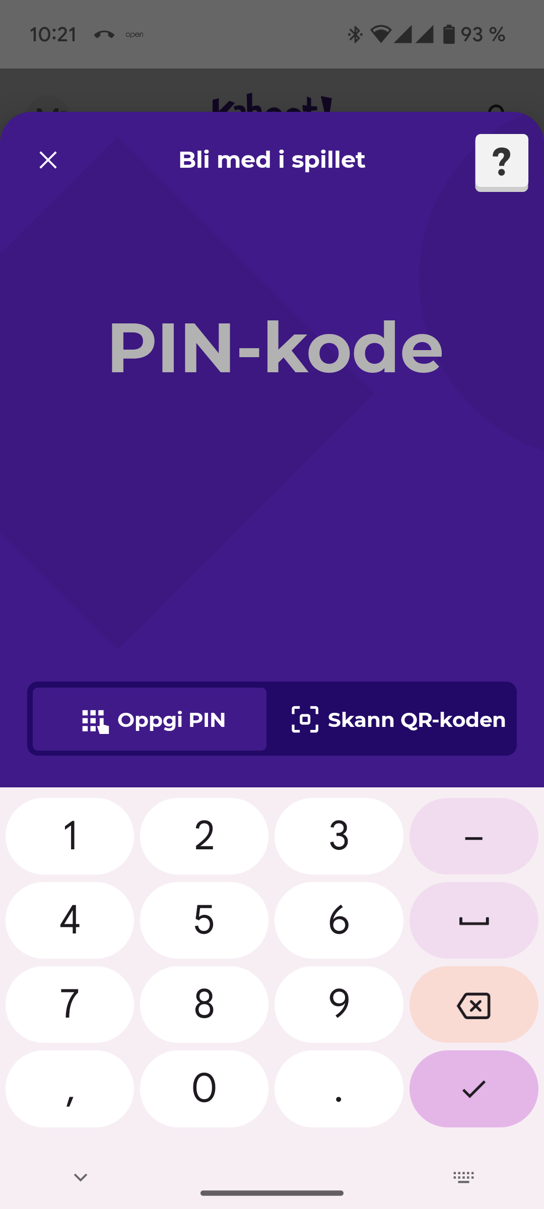 Hver gang du starter en quiz kommer det opp en ny pin. Deltakerne skriver inn den pin-koden for å angi at de er med i quiz-en.