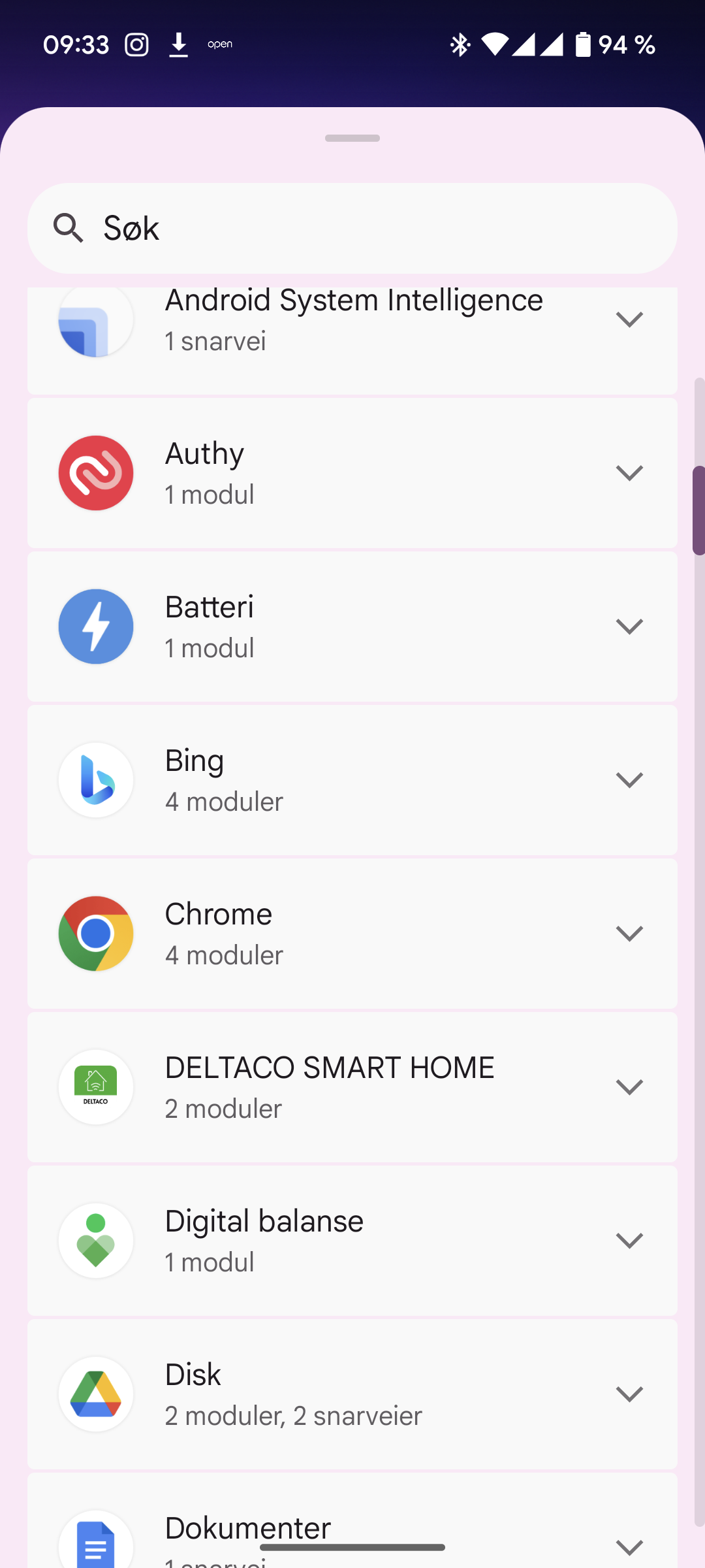 Det er de ulike appene du har installert som bestemmer hvilke moduler du kan bruke. - For å se listen over tilgjengelige moduler for appen, trykk på appen eller den lille pila ved siden av appen