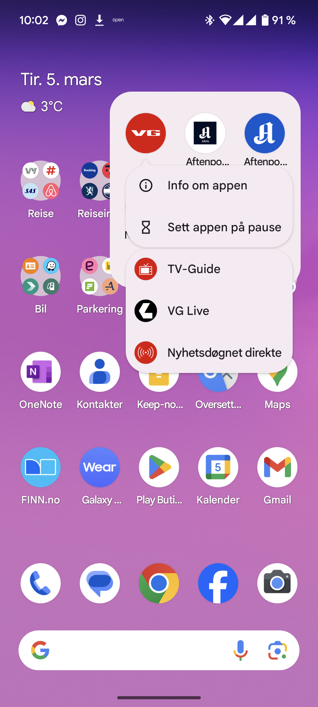 Da ser vi at VG TV-guide har blitt et eget ikon (som vi også kan kalle en snarvei). Trykker jeg på denne kommer jeg rett inn på TV-guiden til VG.