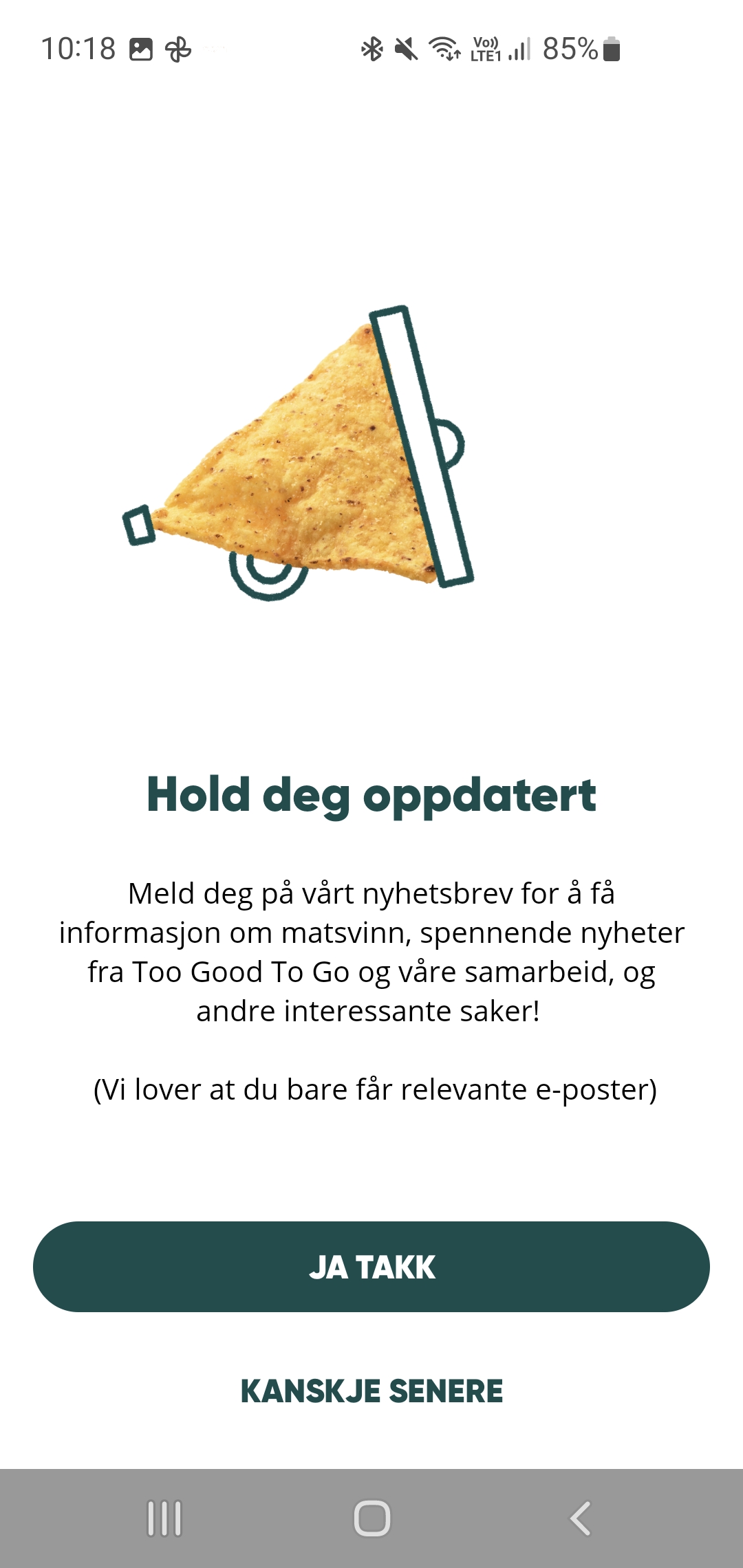 Så velger du om du vil motta nyhetsbrev derfra. Vi foretrekker nei (og svarer derfor «Kanskje senere»), men du velger selv.