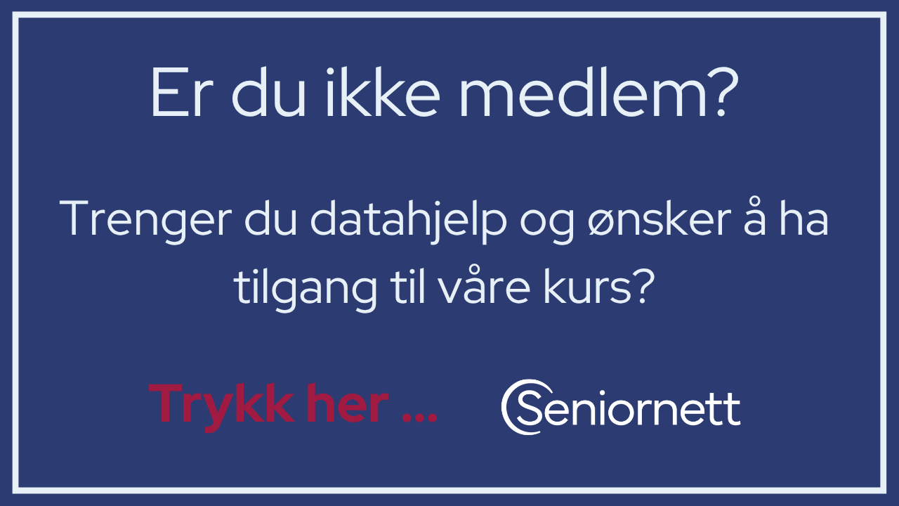 Hvis du har en kommentar til denne artikkelen skriv det inn i kommentarfeltet under. Du må være innlogget for å kunne kommentere. Logg inn her Logg inn – Seniornett Norge