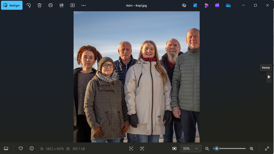 På denne måten kan du enkelt ba igjennom bildene dine. Når du kommer til et bilde du vil gjøre noe med er er du klar til å utføre enkle behandlinger på det.