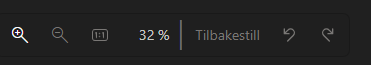 • Prosent-verdien viser hvor mye du har zoomet. Du ser at den endrer seg når du bruker pluss- eller minusknappen