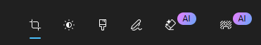 Dette er knapper som bruker bildet ditt i en AI (det betyr kunstig intelligens)-sammenheng. Vi går ikke inn på dette her, da det er forskjellige varianter avhengig av hva du har av microsoft-abonnement.