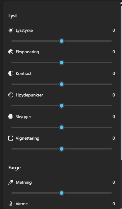 Her er det bare å dra fra den blå prikken til høyre eller venstre. Så ser du hvilken effekt det har på bildet.