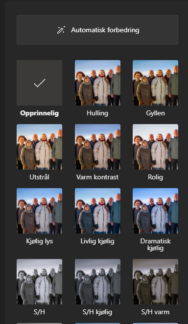 Husk at du alltid har mulighet til å avbryte før du har lagret. Lurt å ikke «ødelegge» originalbildet, men lagre en kopi.